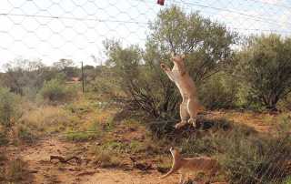 Viele Geparden auf der Farm wurden in der Vergangenheit als Hautiere gehalten oder mussten als Waisen mit der Flasche aufgezogen werden. Durch den engen Menschenkontakt haben sie ihre natürliche Scheu verloren und können aus Sicherheitsgründen nicht mehr ausgewildert werden. Um ihnen dennoch ein wenig Normalität zu bieten, gibt es die sogenannten „Cheetah Walks“. Für einige Stunden täglich werden die Geparden aus den Gehegen geholt und auf einen Spaziergang im Reservat mitgenommen. Hier können sie sich frei bewegen und bei Gelegenheit auch jagen. Da Geparden mit über 100 km/h Laufgeschwindigkeit die schnellsten Landwirbeltiere der Welt sind, kann es passieren, dass man sie bei einem Jagdversuch aus den Augen verliert. Für diesen Fall wird ihnen vor jedem Spaziergang ein GPS-Halsband angelegt. So können sie im Notfall immer geortet werden.